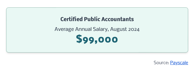 “While earning your CPA license is challenging, it can also benefit your career. The average certified public accountant’s salary was nearly six figures in August 2024, according to Payscale. Additional compensation like performance bonuses and employee stock options can increase your earnings.”